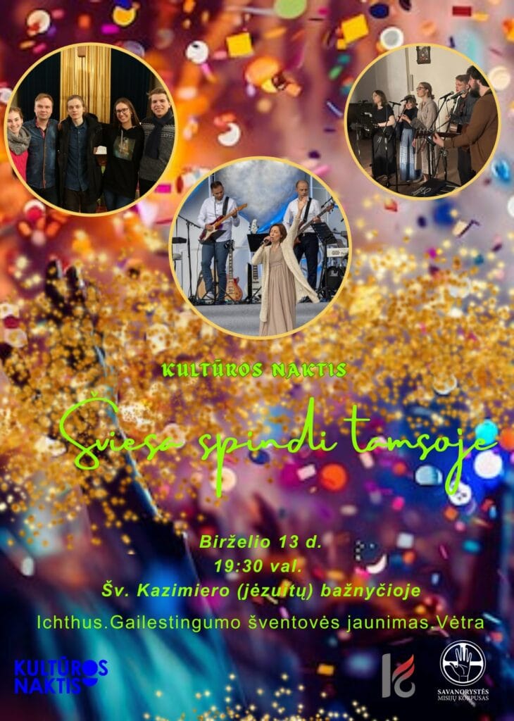 This is an open evening of youth worship. A place to pause for a moment, hear new, improved or old hymns, gather for prayer or get acquainted with Christian worship performed by young people. The well-known groups Ichthus, Vėtra and the youth group of the Shrine of Mercy will participate in the event. The goal is to be open to everyone who comes to the church. It doesn’t matter whether they are Vilnius residents or city guests. During the event, there will be amazing light effects that will reveal the beauty of the church.