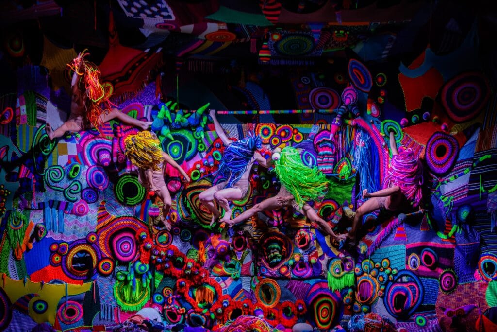 Tai tarpdisciplininis jutiminis spektaklis, apjungiantis instaliacijos meno, šiuolaikinio cirko, fizinio, objektų teatro ir gyvos muzikos elementus. Jo epicentre – Čilėje gimusios, dabar Vokietijoje gyvenančios ir kuriančios režisierės Paulos Riquelme rankomis numegzta 7 metrų ilgio ir 5 metrų aukščio scenografija. Nuo pirmos akimirkos spektaklis panardina į hipnotizuojantį vaizdinį – scenografijoje karaliauja ryškios spalvos, kontrastuojantys raštai, abstrakčios formos, o netikėti plyšiai atsiveria ir užsiveria megztų figūrėlių ir gyvų personažų rankų bei kojų raizgalynei. Muzikos garsų fone akrobatai tai įsisiautėja, tai ištirpsta, sukurdami kaleidoskopinę reginio atmosferą. Jo pirmapradiškumas leidžia nevaržomai tyrinėti ir mėgautis netikėčiausiais pasąmonės komentarais, o estetinis spektaklio patyrimas ateina per charizmą, juoką ir lengvą sumišimą.